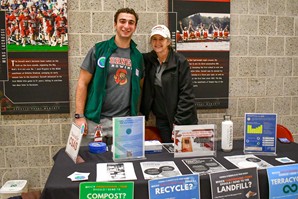 - Sustainability table with flyers, trivia, and prizes
